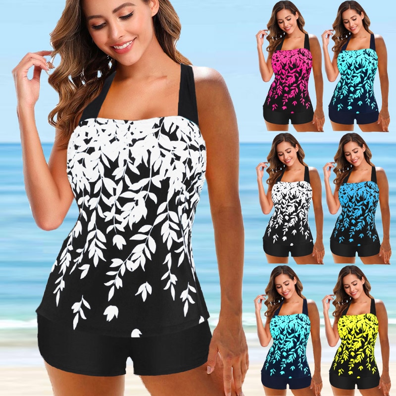 2024 Women Sexy Plus Size Beachwear Swim Tankini Swimwear Bathing Suit Two Pieces Botany Printed Tankinis Summer Swimdress-colinskeirs