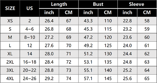 Size Chart: